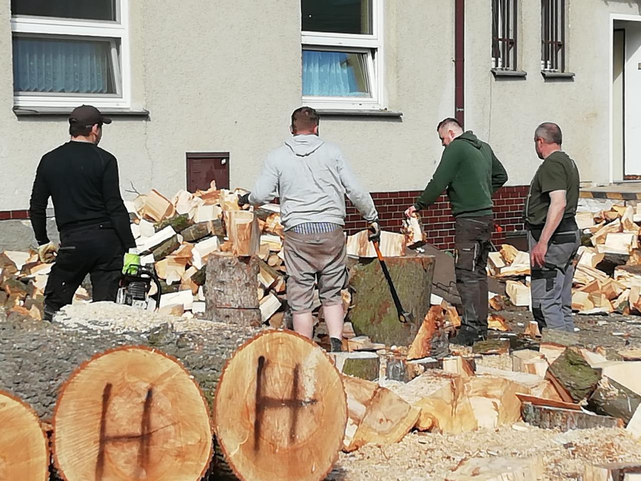 Obyvatelé, převážně tatínci, upravovali plochu nového dětského hřiště a následně seli trávu. Myslivci řezali dřevo pro Obecní hospůdku.