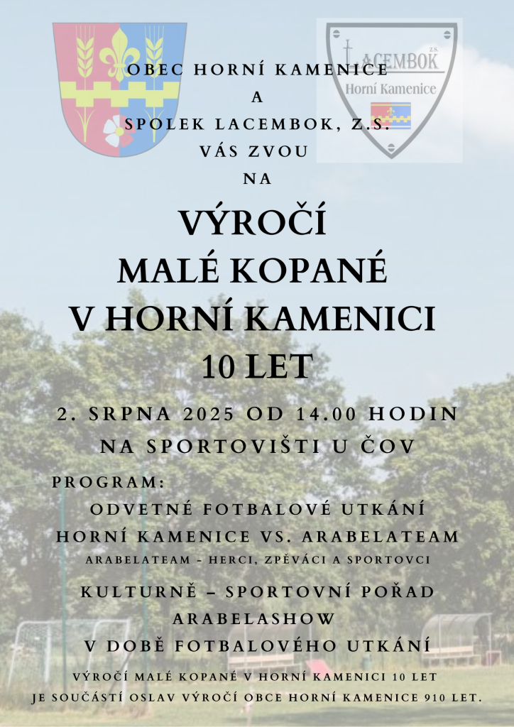 LACEMBOK, z.s. & Obec Horní Kamenice: Výročí Malé kopané v Horní Kamenici 10 let